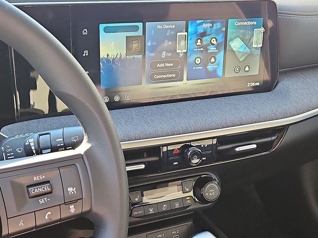 - Radio: AM/FM/SiriusXM Audio System -inc: 12.3" color touchscreen display w/4 speakers, Bluetooth® hands-free phone system, streaming audio via Bluetooth®, NissanConnect featuring wireless Apple CarPlay, wireless Android Auto, Siri eyes free and hands-free text messaging assistant, audio and Bluetooth® steering wheel switches
