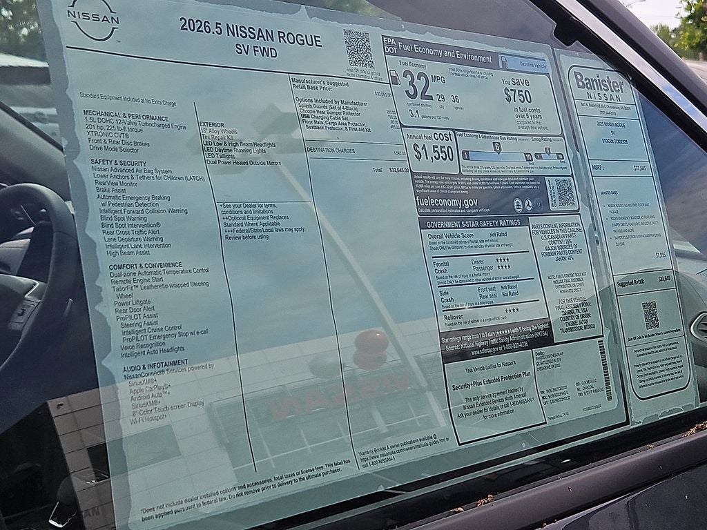 Protect it from unwanted accidents with a cutting edge backup camera system. This small suv offers Apple CarPlay for seamless connectivity. Start the Nissan Rogue from inside with remote start. Bluetooth® technology is built into this small suv, keeping your hands on the steering wheel and your focus on the road. This 2026 Nissan Rogue comes equipped with Android Auto for seamless smartphone integration on the road. It keeps you comfortable with Auto Climate. The vehicle has a 3 Cyl, 1.5L high output engine. Front wheel drive on this 2026 Nissan Rogue gives you better traction and better fuel economy. Enjoy the convenience of the power liftgate on this unit. This unit projects refinement with a racy metallic gray exterior. Maintaining a stable interior temperature in it is easy with the climate control system. The Electronic Stability Control will keep you on your intended path. Help alleviate lower back pain with the driver seat lumbar support in this model.