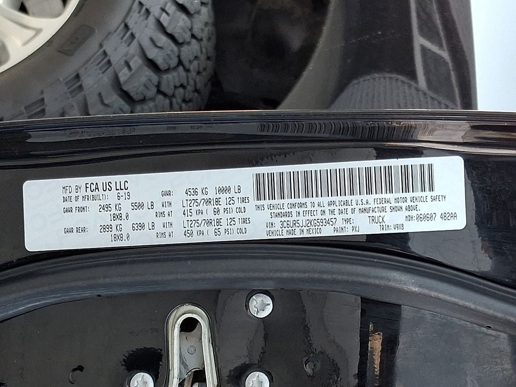 Quick Order Package 2ZZ Big Horn. Off Road Package: Front Performance Tuned Shock Absorbers; Tow Hooks; Off Road Decal; Transfer Case Skid Plate Shield; Hill Descent Control; Rear Performance Tuned Shock Absorbers. Snow Chief Group: Clearance Lamps; LT275/70R18E OWL On/off Road Tires; Instrument Panel Mounted Auxiliary Switches; Anti-Spin Differential Rear Axle; Transfer Case Skid Plate Shield; 220 Amp Alternator. Chrome Flat Wheel-To-wheel Side Steps. 18" X 8.0" Polished Aluminum Wheels. Anti-Spin Differential Rear Axle. Remote Start System. LT275/70R18E OWL On/off Road Tires. Rear Window Defroster. Front and Rear Rubber Floor Mats. Instrument Panel Mounted Auxiliary Switches. Diamond Black Crystal PC. Clearance Lamps. **Equipment listed is based on original vehicle build and subject to change. Please confirm the accuracy of the included equipment by calling the dealer prior to purchase.**
