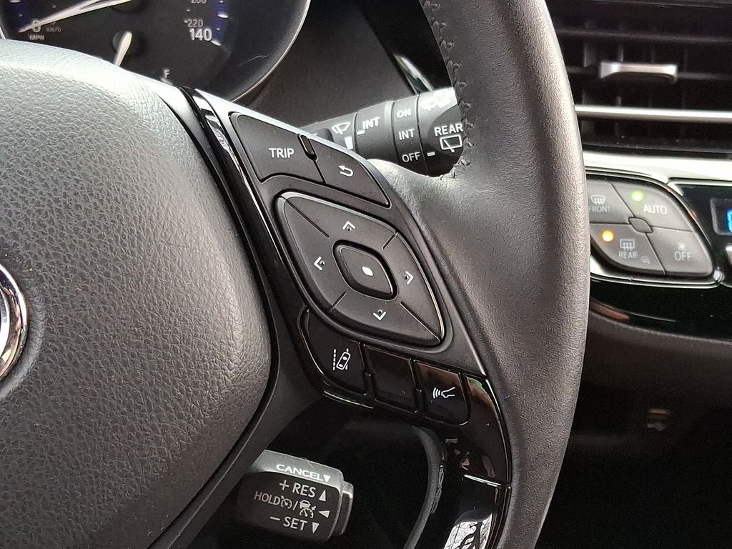 The Toyota C-HR keeps you comfortable with Auto Climate. See what's behind you with the back up camera on the vehicle. Apple CarPlay: Seamless smartphone integration for this model - stay connected and entertained on the go! This vehicle's blind spot monitor enhances safety. It features a hands-free Bluetooth® phone system. This model offers Android Auto for seamless smartphone integration. This unit warns of approaching vehicles with Cross-Traffic Alert. Maintaining a stable interior temperature in this unit is easy with the climate control system. Load groceries and much more with ease into this small suv thanks to the power liftgate. It is front wheel drive. The vehicle has a 4 Cyl, 2.0L high output engine. Electronic Stability Control is one of many advanced safety features on the Toyota C-HR. Easily set your speed in it with a state of the art cruise control system. Increase or decrease velocity with the touch of a button.