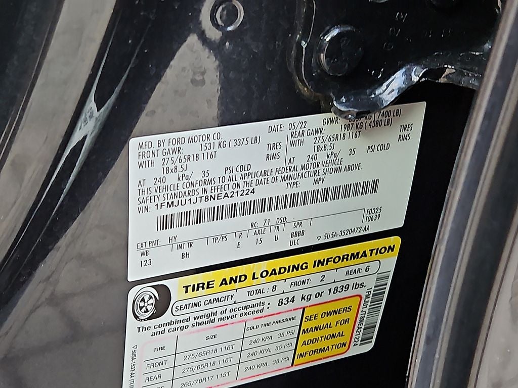 Equipment Group 200A Standard Package: 18" Machined-Face Aluminum Wheels; Cloth Front Captain's Chairs; 3.5L EcoBoost V6 Engine; P275/65R18 AT Tires; 7. 450 lbs GVWR; 3.31 Axle Ratio; AM/FM Stereo with MP3 Capable. **Equipment listed is based on original vehicle build and subject to change. Please confirm the accuracy of the included equipment by calling the dealer prior to purchase.**