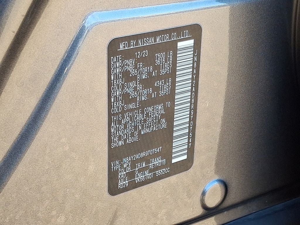 2024 Nissan Armada SV — 5.6L V8, 4WD, 23,576 miles — Norfolk, VA This low-mileage 2024 Nissan Armada SV combines commanding V8 performance with premium comfort and advanced convenience features. Powered by a 5.6L V8 gasoline engine and equipped with 4WD, this Nissan Armada delivers confident towing and composed handling in varied road conditions. With just 23,576 miles, this example represents exceptional value and longevity for buyers seeking a near-new large SUV. Interior appointments include leather seats and automatic climate control for year-round comfort on long drives or daily commutes. Remote start provides cold-weather convenience, while hands-free Bluetooth® keeps your focus on the road and your device connected. A CARFAX Clean Report offers added peace of mind about the vehicle's history. Located in Norfolk, VA, this Nissan Armada SV is offered at the best price in the area—competitive, transparent, and designed to move quickly. The combination of low mileage, V8 power, 4WD capability, and premium amenities makes this model a standout in its class for families, adventurers, and drivers who appreciate refinement and utility. Contact us to schedule a test drive or request the CARFAX report. Financing options are available to qualified buyers. Visit to experience the performance and comfort of this 2024 Nissan Armada SV in person.